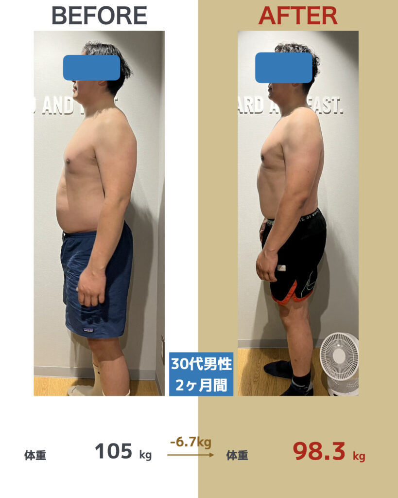 2ヶ月でしっかり体重も落ち、体調を崩すこともなく、動きやすさも保ったまま減量できているのが一番の変化です。